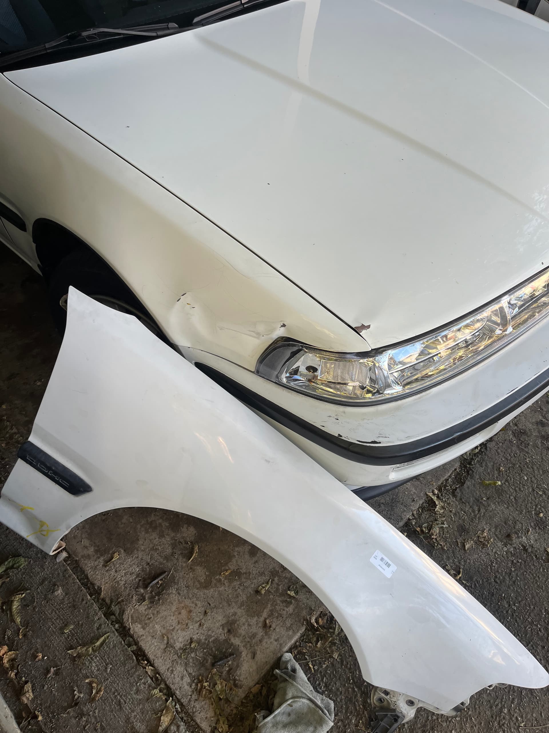 found a fender to replace my dented one. i think it is championship white tho. my car is polar white. i got the part from a 92 integra and it had white handles so i looked up why some have white handles and it says those are championship white but it should look better than my dented fender..