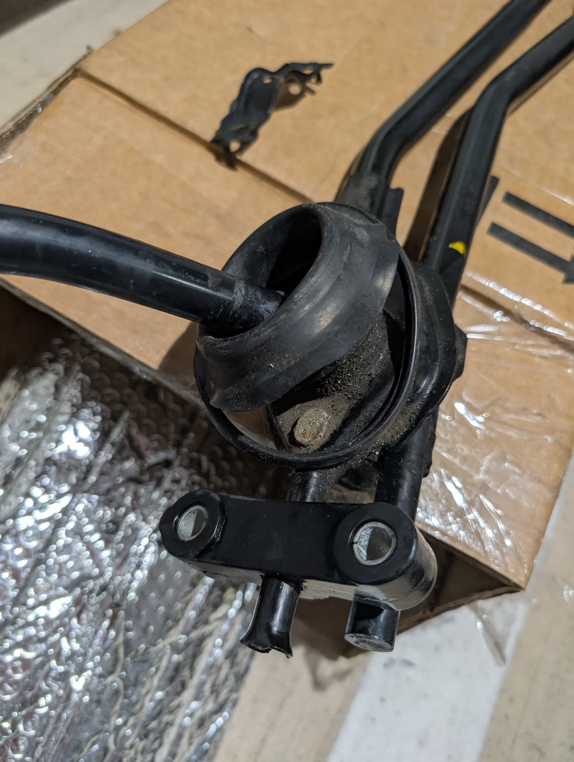Shift linkage came in today and Amazon delivered the poly bushings. I don’t know why people say these are hard to install, I just sprayed glass cleaner to lube it and stepped on it until it popped in lol.