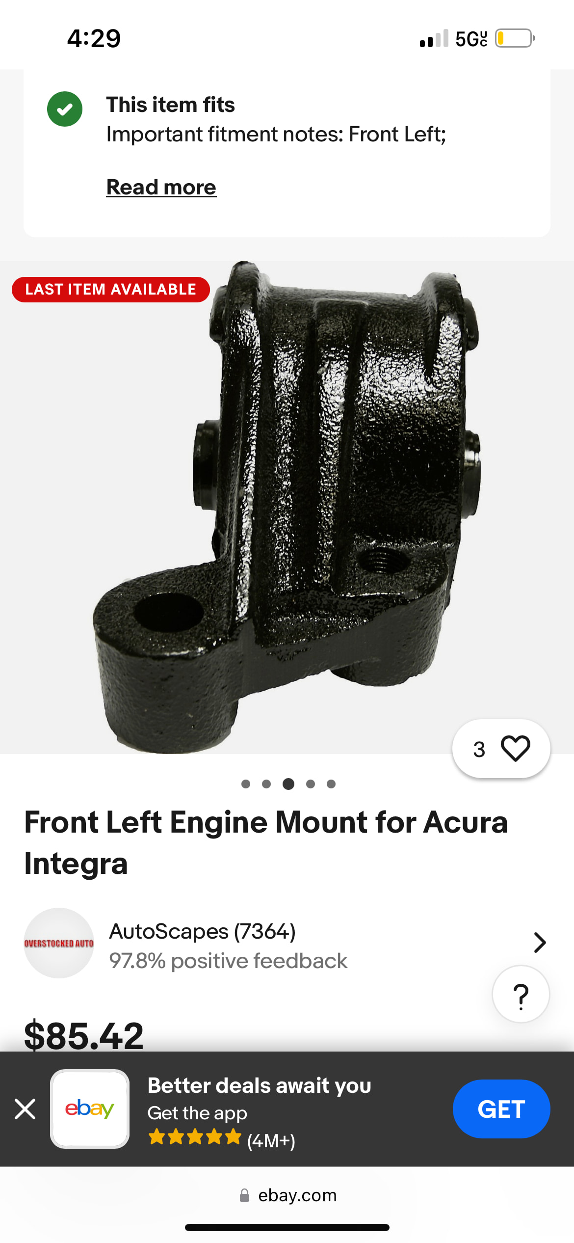 it was so hard to get this mount because none of the parts stores carry it so i had to try ebay for the first time and the seller never shipped it and i had to call ebay customer support and they made them ship it but its already messed up