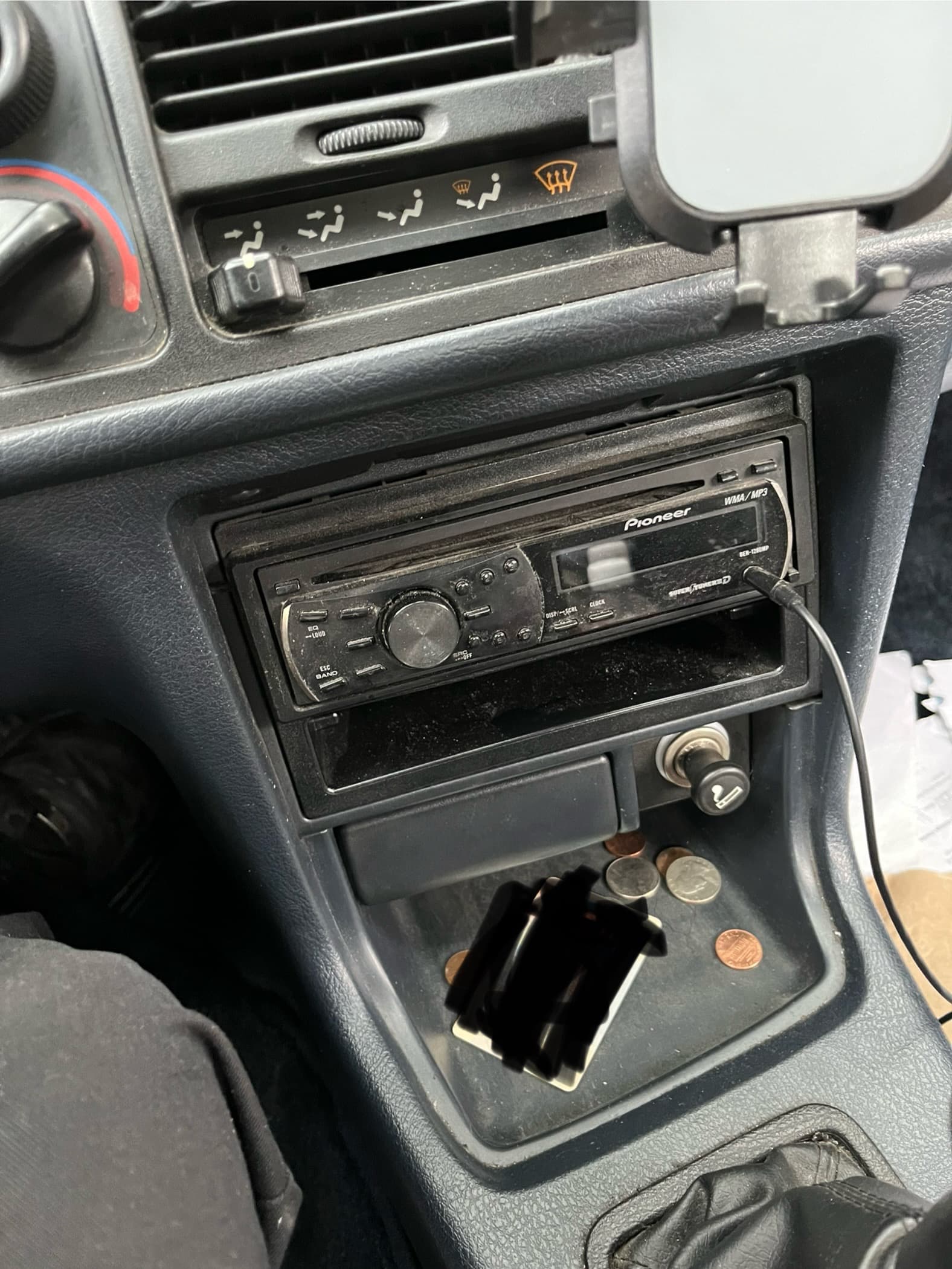 pioneer supertuner 3d.. it has aux and cd and radio but i swear it only gets the lame channels or i dont know how to use it properly because there is like fm1 fm2 fm3 but they all uave the same boring channels idk… at least i can use the aux