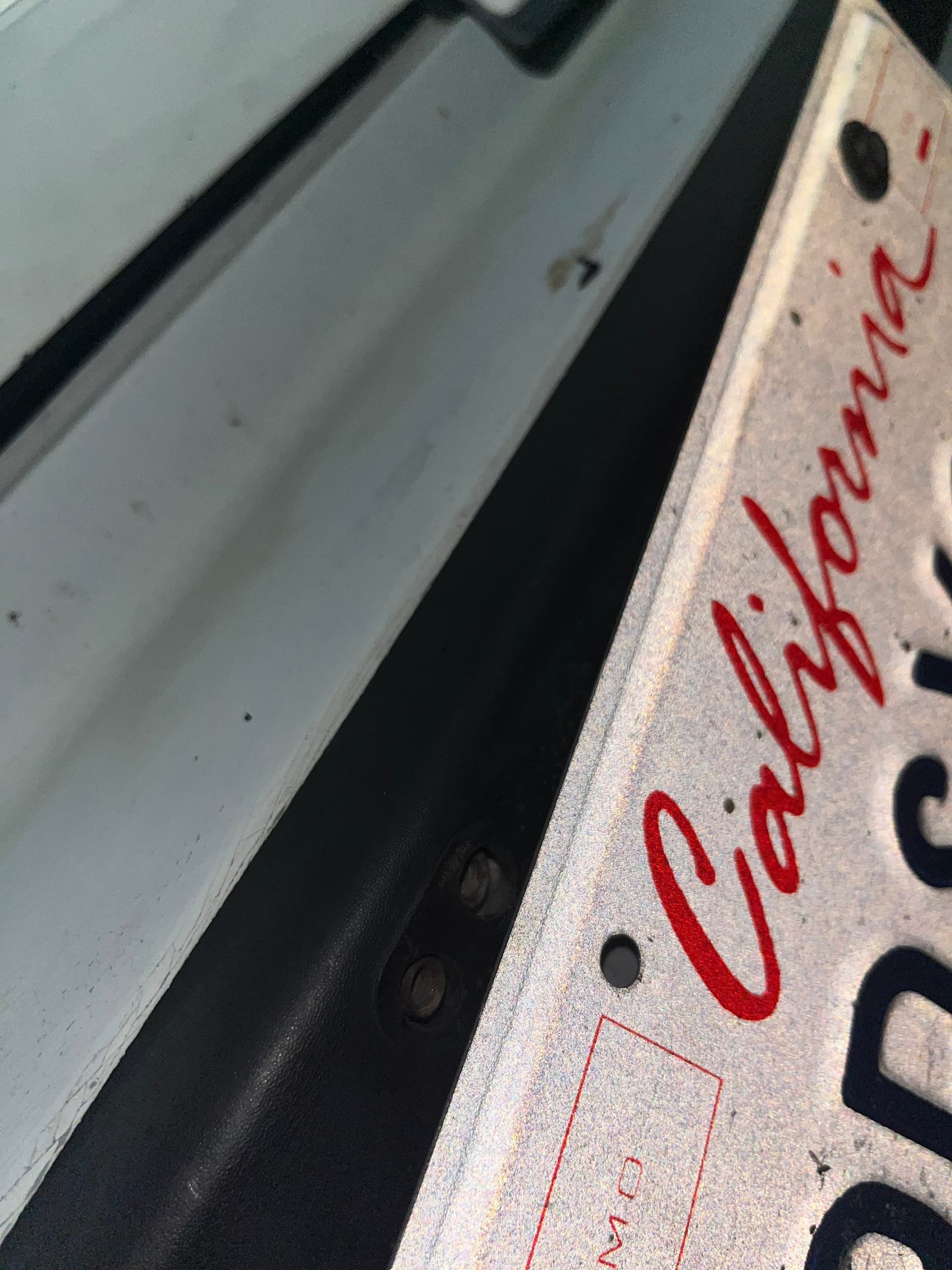 I once designed a license plate mount that went below the bumper lens. No drilling – it was a “hook” design. It worked but it wasn’t great. Perhaps I need to look into that again for states with a required front plate. I’ll look for a pic. But, I also need details on those threaded holes you (and probably others) have. Can you tell me the diameter of the screw you’re using to mount it?