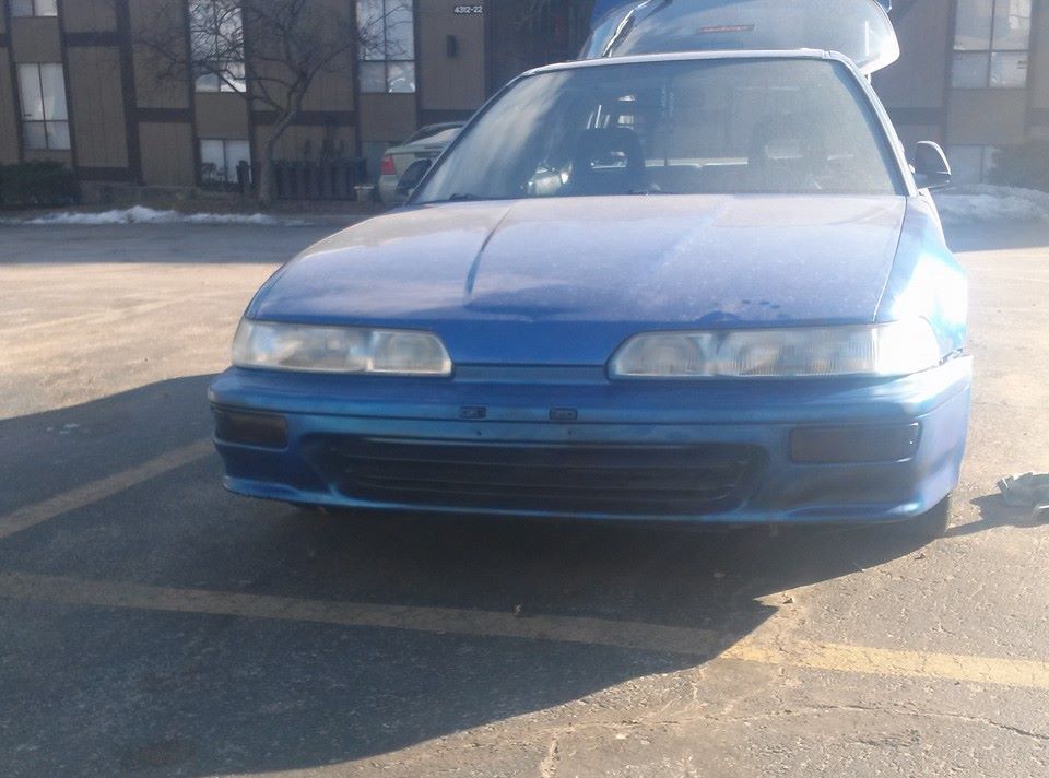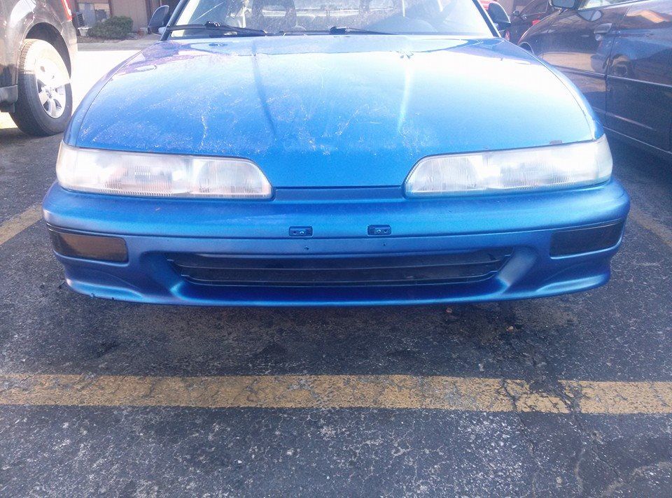 did a quick spray paint job on the front bumper today as well. it aint a master piece but at a distance it matches the rest of the car now. I will be taking it down to the plastic again and doing a total respray of it. or getting a 90-91 bumper for it as I like the look of the 90-91 bumper better with the one-piece headlights.