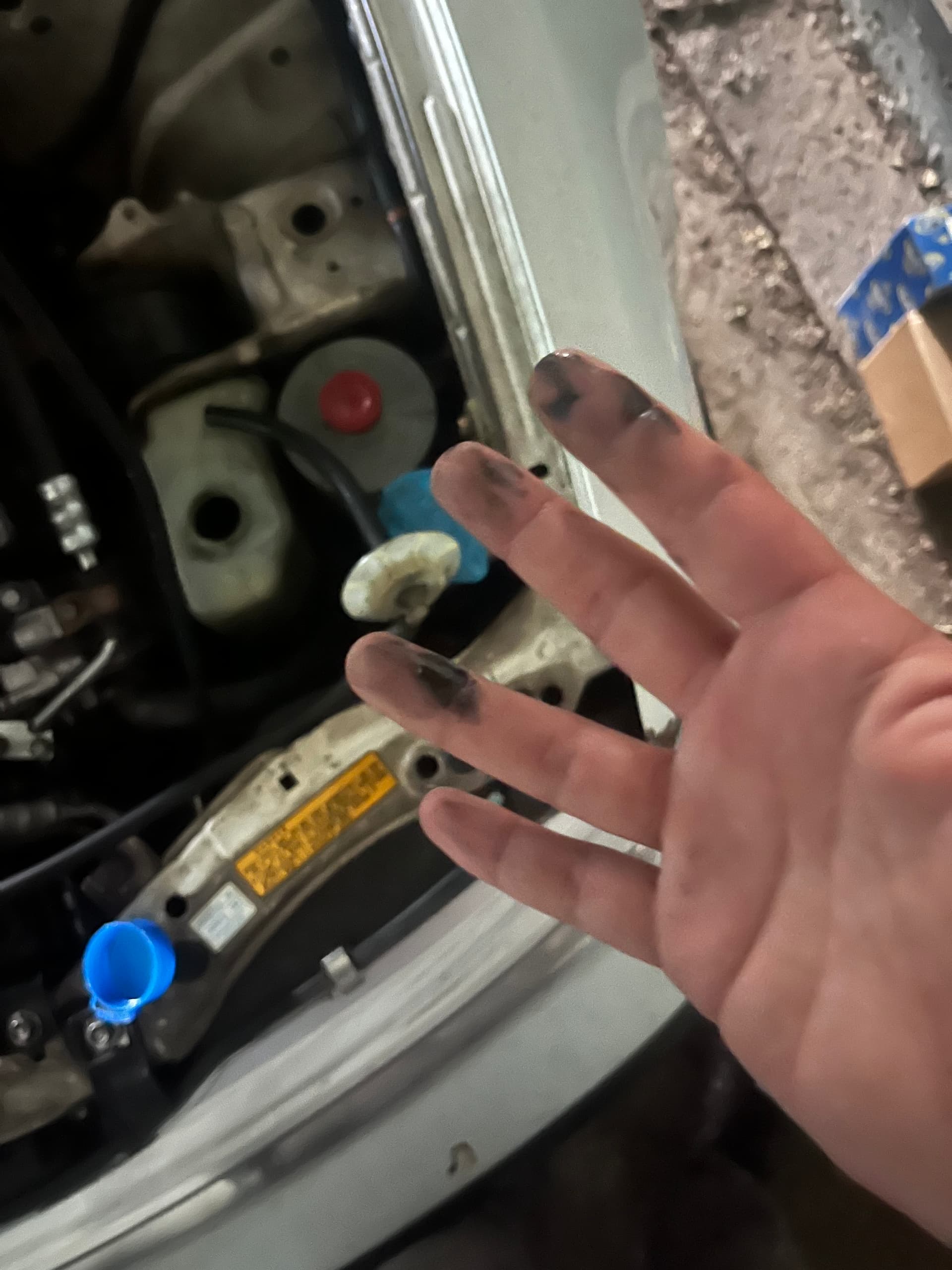 my coolant level in the reservoir has been going down quicker than normal for a month or so and i have been topping it off but when i went to top it off i got this sticky black substance on my fingers and the little hose that guys in the tank is coated in the gunk…