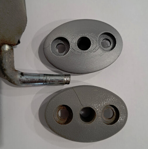 With respect to printing, I have grey ABS material but it won’t match the OEM color. I do have a swatch list at home and will see whether there’s a closer match. Are you able to tell if the piece is hollow or solid? i.e. are you able to see inside that crack?